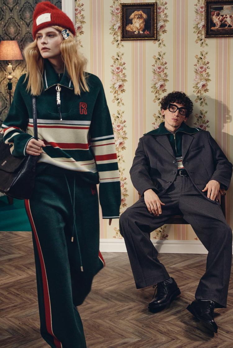 Вязаные брюки с лампасами и вышивкой